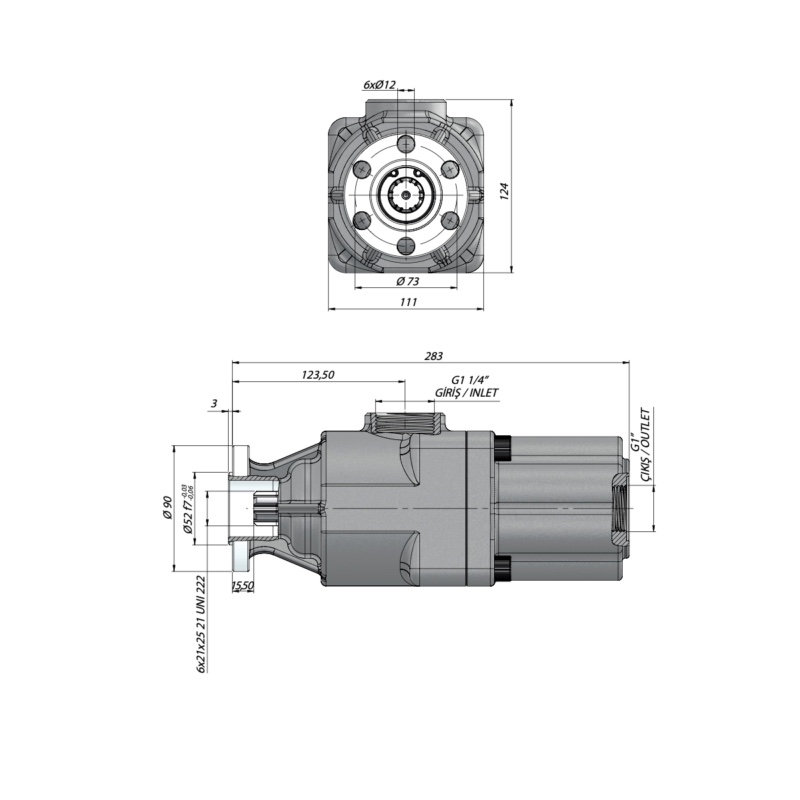 Вал насоса - 21 UNI 222, DIN 5462 SE (6x21x25)