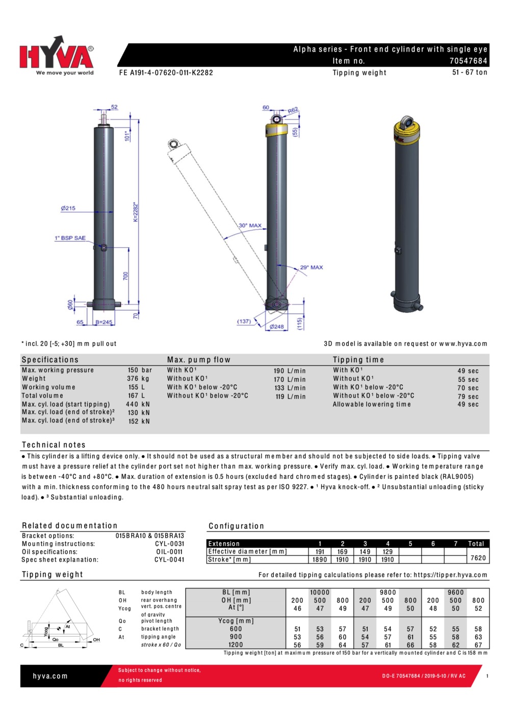 Ход штоков – 7620 мм