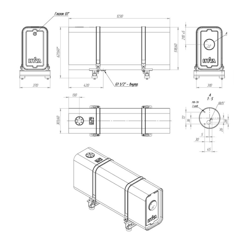 Бак подходит для установки на большинство автомобилей, работающих с гидравликой Hyva, Binotto, OMFB, ABER, Interpump и т.д.