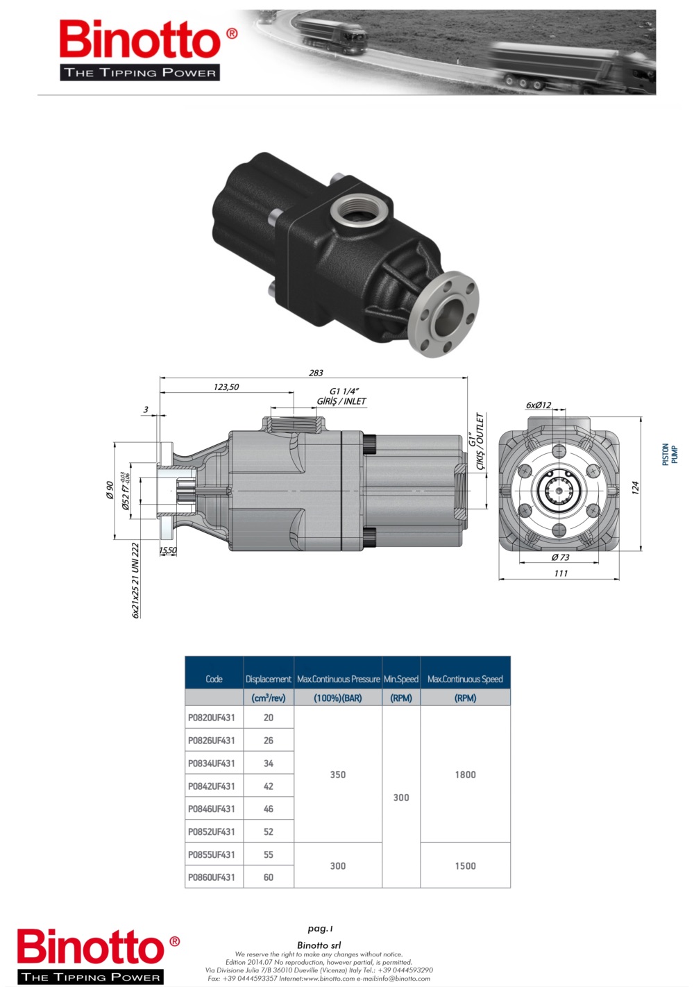 Рабочий объем – 60 см³/об