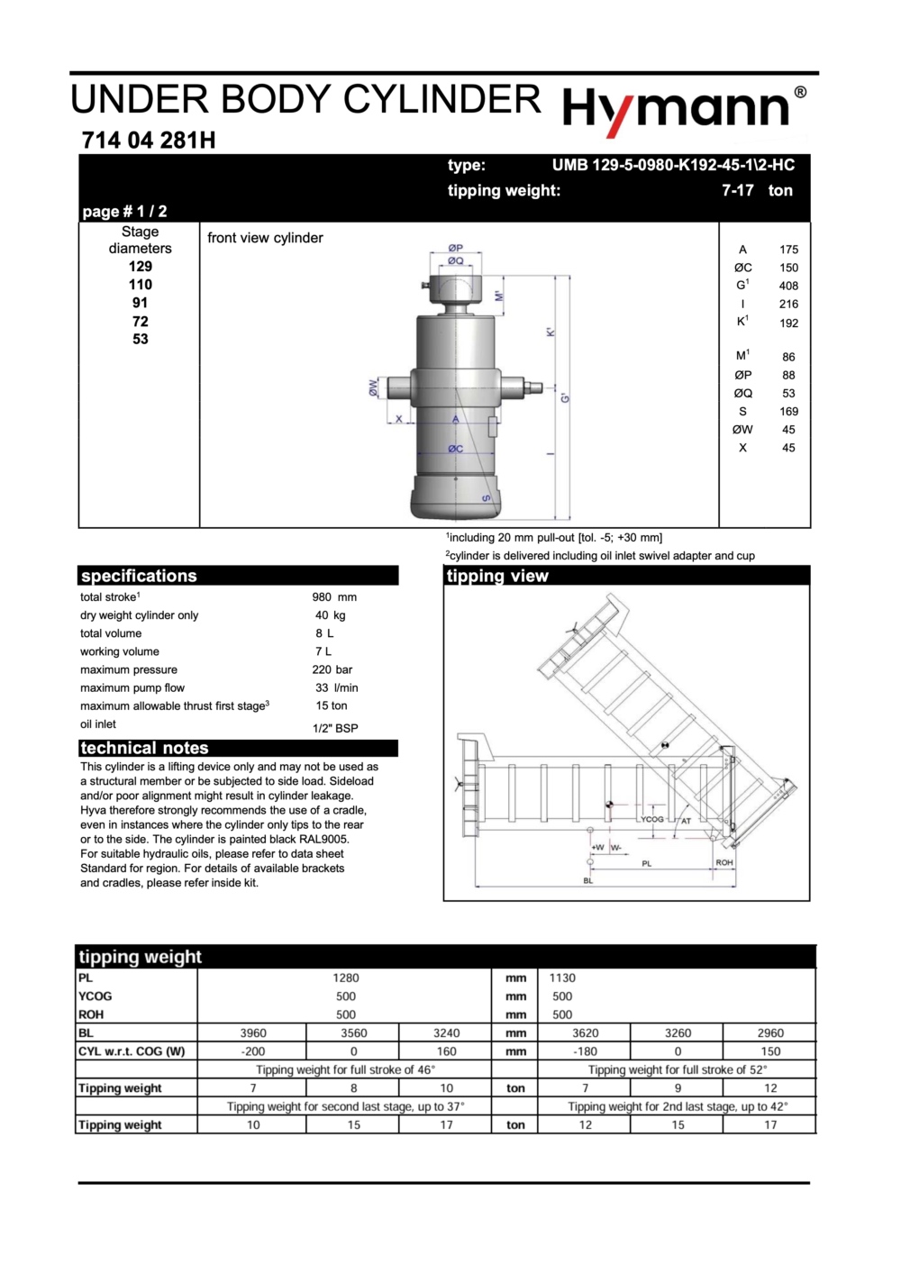 Диаметр первого штока – 129 мм